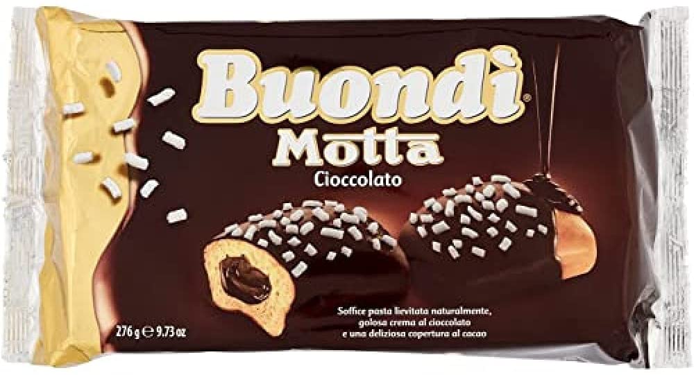 Chocolat Buondì Motta, 6 x 46g. Buondì est le petit-déjeuner délicieux et léger, mais avec 30 % de matières grasses en moins. À la première bouchée, vous serez conquis par sa délicieuse garniture et sa pâte moelleuse (levée 22 heures), et à la seconde par son délicieux glaçage et ses miettes croustillantes. A la troisième bouchée ? Vous en voulez déjà un autre ; Farine de blé ; Sucre ; Huiles et graisses végétales (palme, coco, palmiste) ; Levure naturelle (gluten) ; Jaune d’oeuf ; Sirop de glucose-fructose ; Poudre de cacao maigre (3, 5%) ; Sucre cristallisé (3%) ; Chocolat (1, 8%) ; Dextrose ; Emulsifiants : mono – et diglycérides d’acides gras et lécithine de soja ; poudre de lait écrémé ; sel ; arômes ; épaississants : pectine ; peut contenir des fruits à coque ; à conserver dans un endroit frais et sec ; peut contenir des fruits à coque ; 6 Buondì Motta enrobés de chocolat.Ingrédients : Farine de blé ; sucre ; huiles et graisses végétales (palme, coco, palmiste) ; levure naturelle (gluten) ; jaune d’oeuf ; sirop de glucose-fructose ; poudre de cacao maigre (3,5%) ; sucre cristallisé (3%) ; chocolat (1,8%) ; dextrose ; émulsifiants : mono- et diglycérides d’acides gras et lécithine de soja ; poudre de lait écrémé ; sel ; arômes ; épaississants : pectine ; peut contenir des fruits à coque.