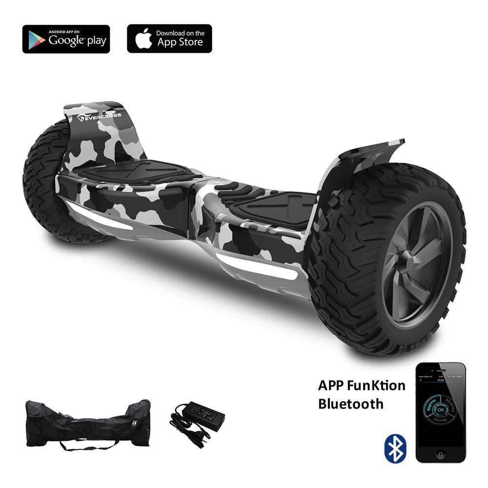 Evercross 8,5 pouces, Bluetooth App Suv Hoverboard Scooter électrique Scooter Smart Balance Allroad Skateboard Army Green. La plate-forme électrique à équilibrage automatique s’adapte de manière dynamique à votre balance, à l’aide d’un gyroscope interne et d’un capteur d’accélération. Le mouvement effectué par la plate-forme est contrôlé par votre centre de gravité. Le nouveau balancier intelligent vous permettra de vous déplacer confortablement en ville du seul mouvement de votre corps. Unisexe, convient aux adultes et aux enfants. Le scooter électrique est un véritable moyen de transport, car le vélo se répand dans les métropoles car il est écologique et peut être utilisé comme activité de loisir ou pour parcourir de longues distances dans le confort. Également appelés planches à roulettes électriques ou hoverboards, ils sont sans aucun doute la nouveauté du moment et une idée valable pour un nouveau cadeau réussi. Nous parlons d’un skateboard électrique ou d’un appareil technologique capable de se déplacer avec le déplacement du centre du corps et une pression des pieds. Version pour adultes. Cela continue simplement en pressant un peu les doigts. Les premières fois ne seront pas faciles, mais une fois que vous aurez trouvé l’équilibre et la bonne pression pour pousser ou pour tourner, vous volerez rapidement autour de la ville et avec beaucoup de plaisir. Nous recommandons de l’utiliser avec un casque de protection en cas de chute. Caractéristiques techniques: dimensions de l’emballage (cm) – 22 26 72cm poids net: 14 kg. Charge maximale – 150 kg. Taille des pneus: 8,5 “” autonomie: 15-20 km vitesse maximale: 15 km / h Capacité de la batterie: 36v 4.4a Indicateur de batterie Temps de charge: 2-3 h Puissance du moteur: 700w (2x350w) le paquet contient: 1 streetboard 8.5 pouces 1 brosa 1 chargeur 1 manuel certificats: ce – le produit est conforme aux exigences de sécurité, prévues par les directives ou règlements communautaires applicables. rohs – certificat, qui limite le contenu en substances dangereuses fcc – normes de qualité des états-unis msds – certificat de sécurité