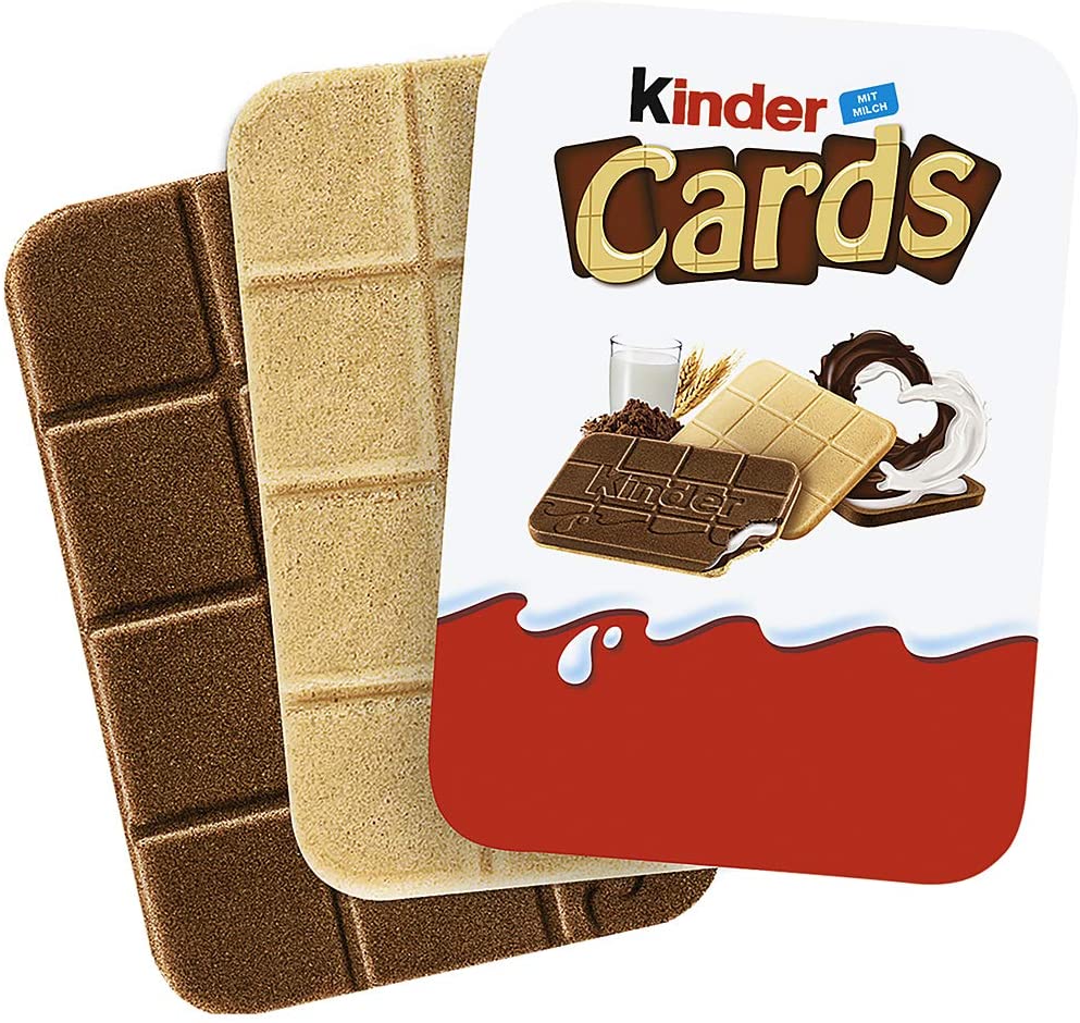 Kinder Cards T2x30 : biscuits gaufrés fourrés à la crème, au lait et au cacao. Vous n’avez jamais vu un biscuit comme celui-ci. Les Kinder Cards sont des biscuits très fins, mais à la première bouchée, vous découvrirez un fourrage crémeux inattendu à base de lait et de cacao, pour une expérience gustative surprenante. Sa gaufrette au cacao est croustillante et ne fond pas, vous pouvez donc toujours l’emporter avec vous. Biscuit gaufré fourré de crème, de lait et de cacao. Ingrédients : Lait écrémé en poudre, sucre, huile de palme, farine de blé, cacao maigre, huile de tournesol, émulsifiants : lécithine (soja), sel, poudre à lever (carbonate acide de sodium), vailline.Peut contenir des noisettes.Exposant composé de 30 pièces .