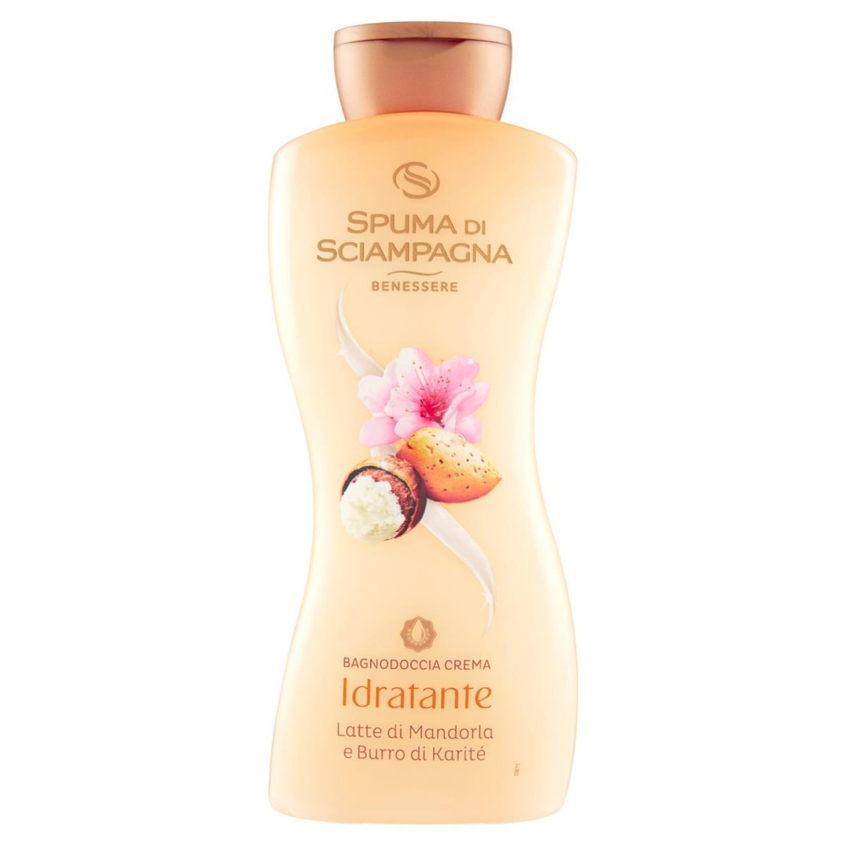 Spagna di Sciampagna Wellness Gel Douche Hydratant Crème Au Lait d’Amande et Beurre de Karité 650 ml. Redécouvrez chaque jour la beauté naturelle de votre corps et retrouvez votre bien-être essentiel avec le bain crème hydratant. Sa formule est enrichie de lait d’amande et de beurre de karité, ingrédients naturels que Spuma di Sciampagna a judicieusement choisis pour vous. Son doux parfum d’amande douce et sa formule crémeuse, grâce à une combinaison innovante d’actifs hydratants et revitalisants, caressent votre corps et vous procurent chaque jour le plaisir enveloppant d’un câlin. Testé dermatologiquement, il respecte le pH naturel de la peau. Produit 100% italien.COMPOSITION: Aqua, Sodium Laureth Sulfate, Glycérine, Chlorure De Sodium, Cocamidopropyl Betaine, Coco-Betaine, Lauroyl / Myristoyl Methyl Glucamide, Parfum, EDTA Disodique, Capryloyl / Caproyl Methyl Glucamide, Acide Citrique, Acide Citrique, Styrène / Acrylates Copolymère, Polyester Beurre de Karité, Huile de Prunus Amygdalus Dulcis, Beurre de Butyrospermum Parkii, Protéine d’amande douce hydrolysée, Palmitoyl hydrolysé, Protéine de blé hydrolysée, Phénoxyéthanol, Propylèneglycol, Sorbate de potassium, Benzoate de sodium, Methylchlorotholaïdone, Methylisotholone